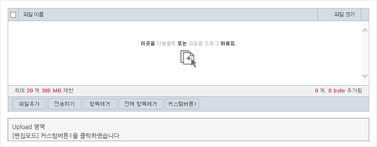 커스텀버튼을 추가하여 커스텀버튼을 클릭 시 사용자가 원하는 기능을 구현 할 수 있습니다.