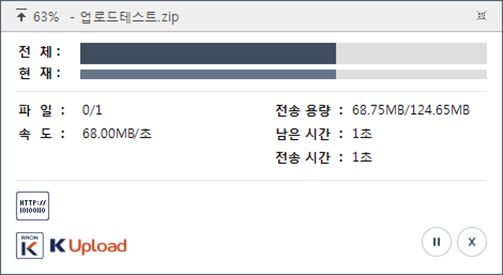 1. 업로드 중 중단 하고 다시 업로드 하면 이어올리기를 하실 수 있습니다. 2. 업로드 중에 네트워크가 잠시 단절했다가 연결되면, 이어올리기를 하실 수 있습니다.