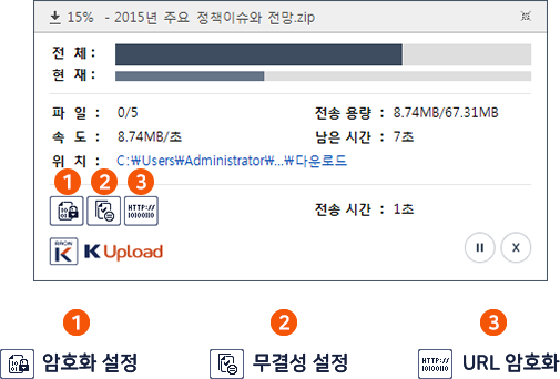 AES(Advanced Encryption Standard)알고리즘의 256bit 암호화와 파일 송수신 전/후로 파일에 대한 무결성 설정은 다음과 같이 전송창에서 확인 가능합니다.