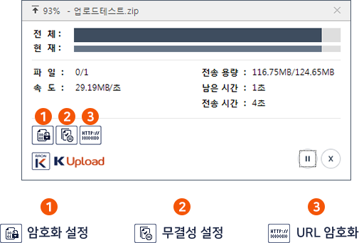 파일 송수신 전/후로 파일에 대한 무결성 설정은 다음과 같이 전송창에서 확인 가능합니다.