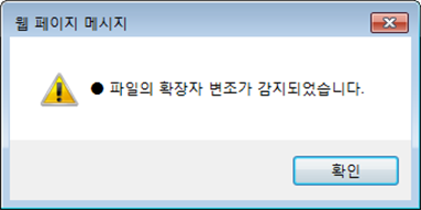 확장자를 임의로 변경하여 파일을 업로드할 경우 확장자 변조를 감지하여 파일을 업로드하지 않습니다.